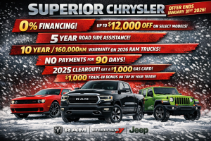 Yes, send me exclusive offers and promotions from SUPERIOR CHRYSLER DODGE JEEP and its partners. I can withdraw my consent at any time.
